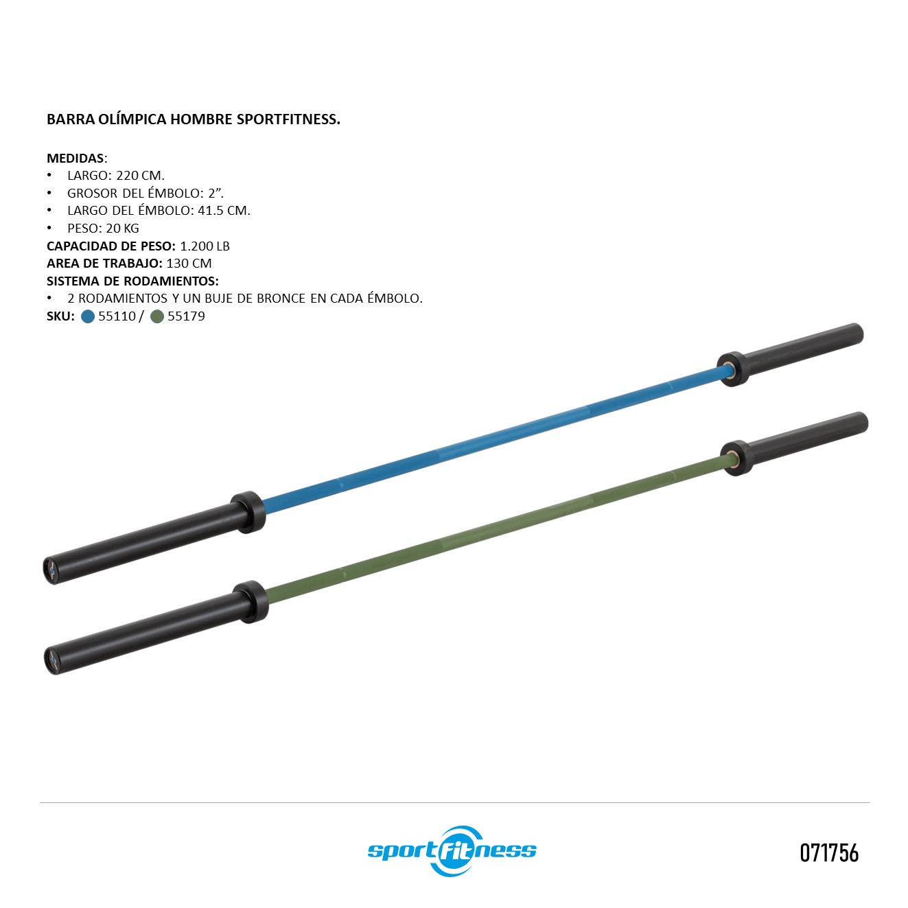BARRA OLÍMPICA 20KG PARA HOMBRES SPORTFITNESS