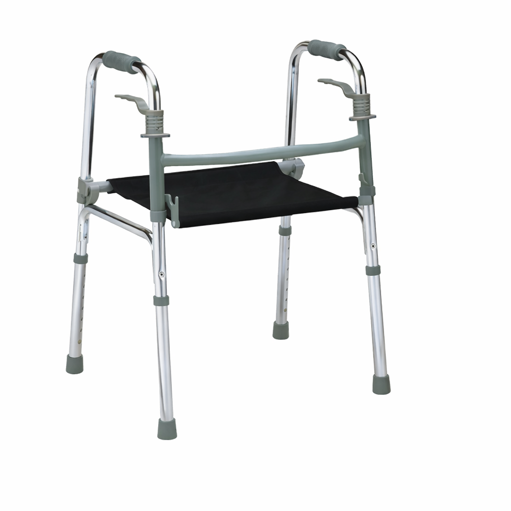 CAMINADOR PLEGABLE EN ALUMINIO CON SILLA EN LONA MCO