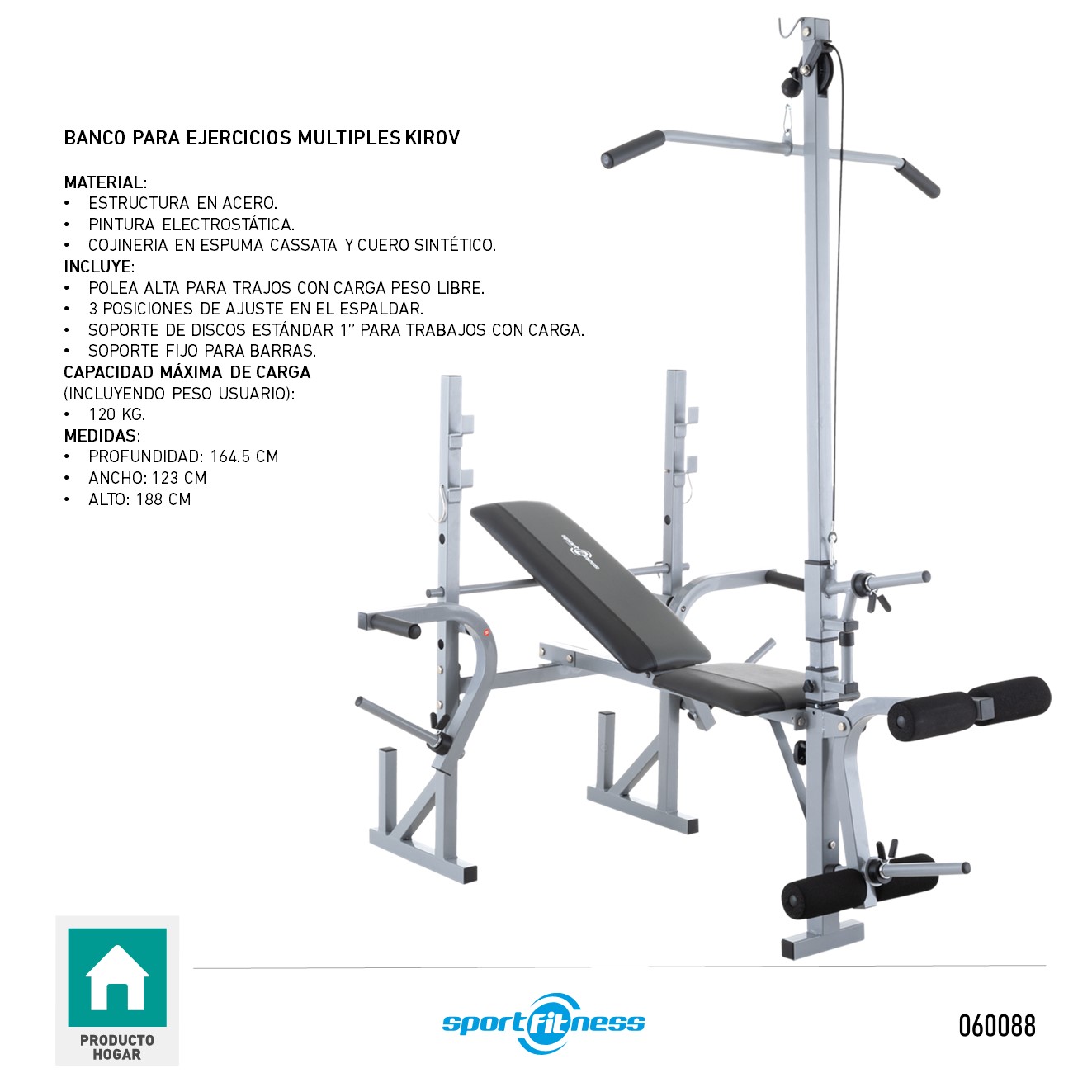 BANCO EJERCICIO MULTIPLE POLEA ALTA KIROV WT-307AH SPORTFITNESS